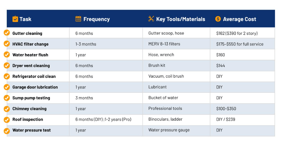Homes with consistent maintenance routines sell for around 10% more than average. More importantly, budgeting 1–4% of your home’s purchase price annually helps prevent sudden, catastrophic expenses. As Lucas Puente, Economist at Thumbtack, notes: “Across the U.S., buyers should be prepared to spend at least a few thousand a year in home maintenance costs."