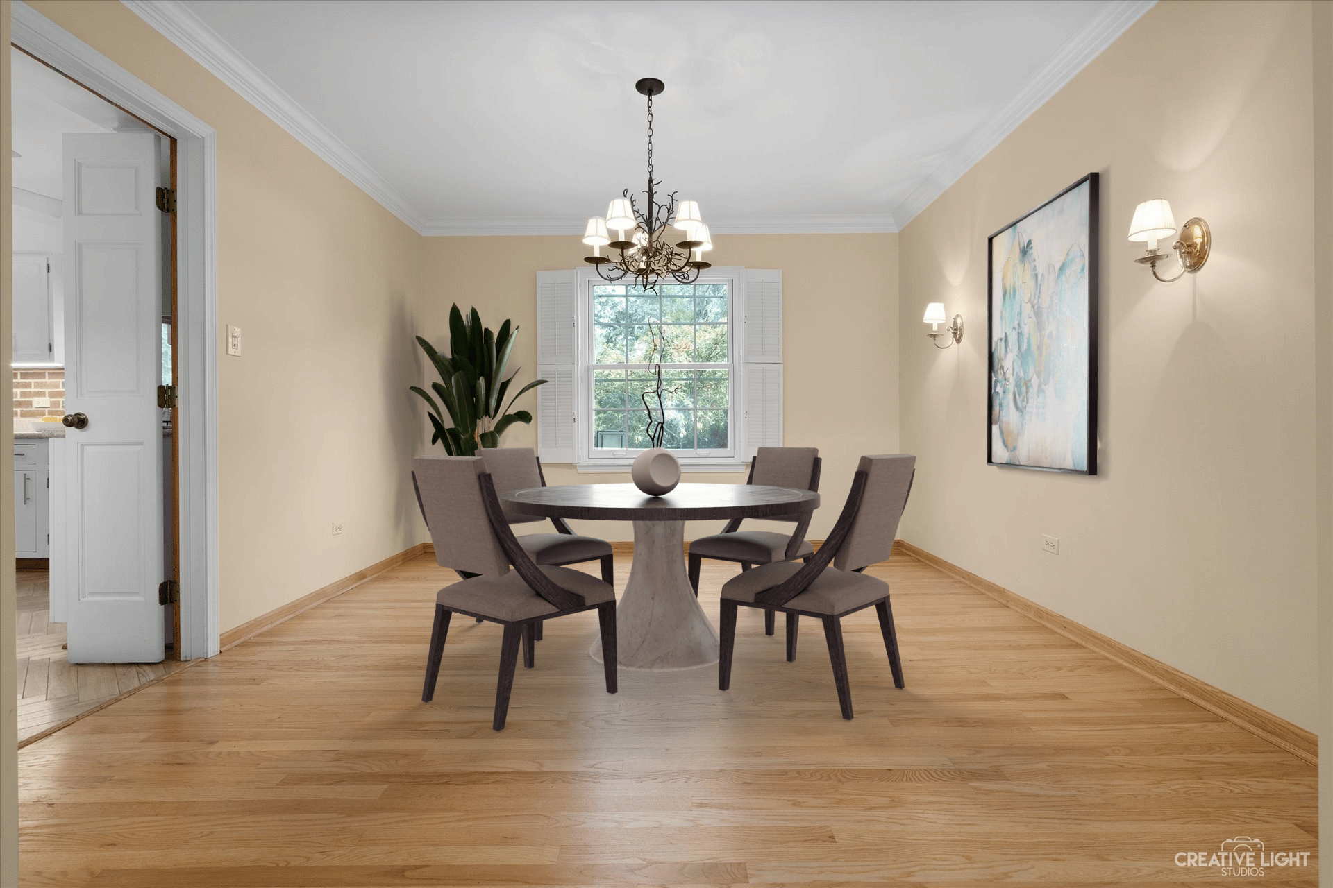 In the formal living and dining rooms, crown molding adds a touch of elegance, while the dining room’s whimsical chandelier brings a bit of fun to your dining experiences. It’s a space designed to make every meal feel special.