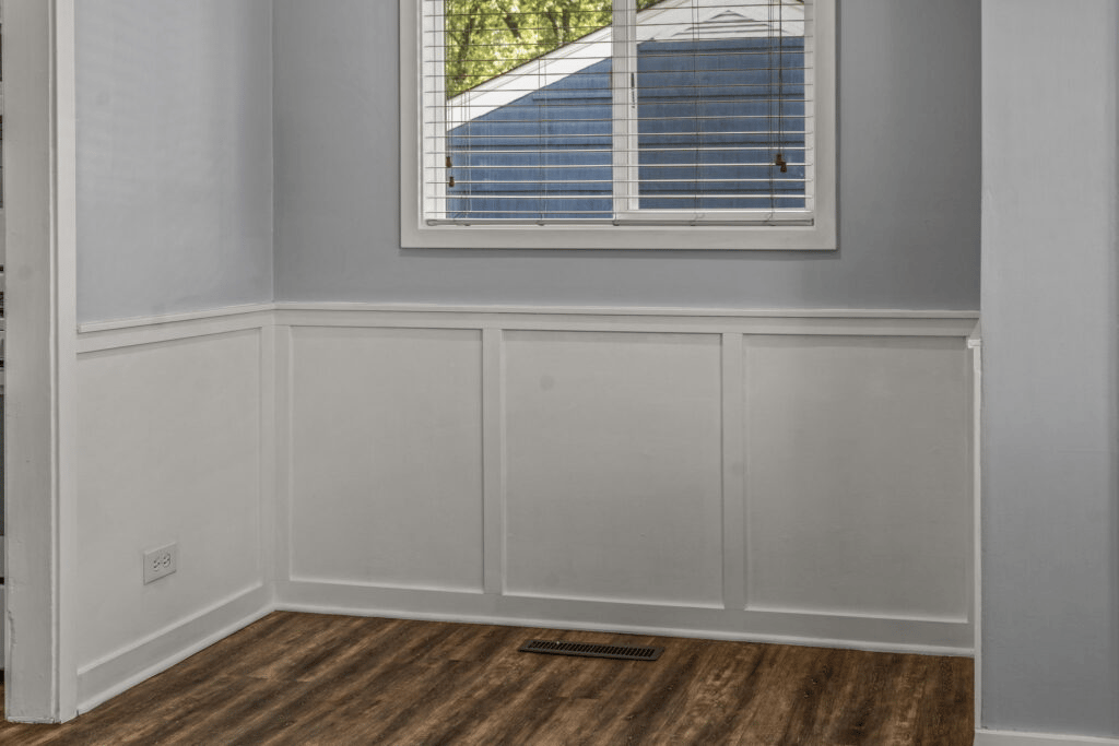 No detail was overlooked. Even an elegant dining space was created with recessed lighting and white wainscoting.