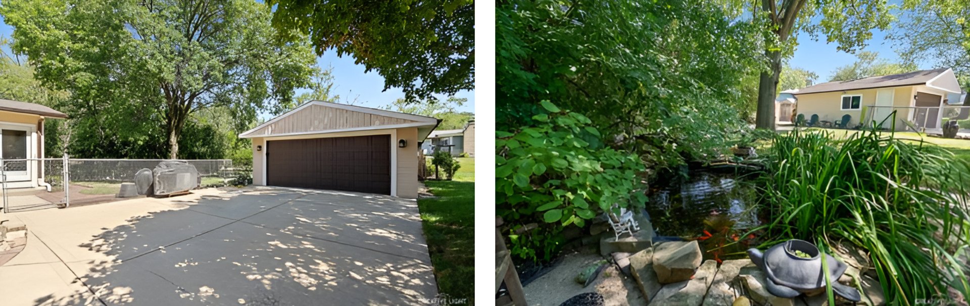 Beyond the interior, the outdoor space is a haven of relaxation and entertainment. A brick paver patio nestled behind the 2-car detached garage offers a private retreat, while the fully fenced rear yard, putting green, and goldfish pond provide tranquil outdoor escapes. With a new roof on the house in 2023, new front and rear entry doors, and professional landscaping, this home exudes curb appeal.