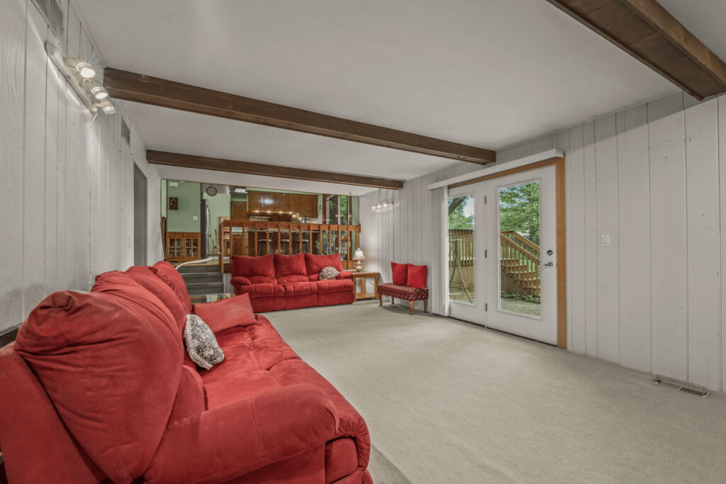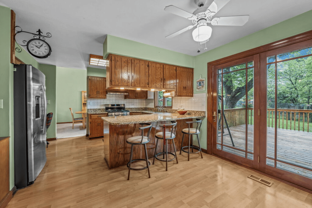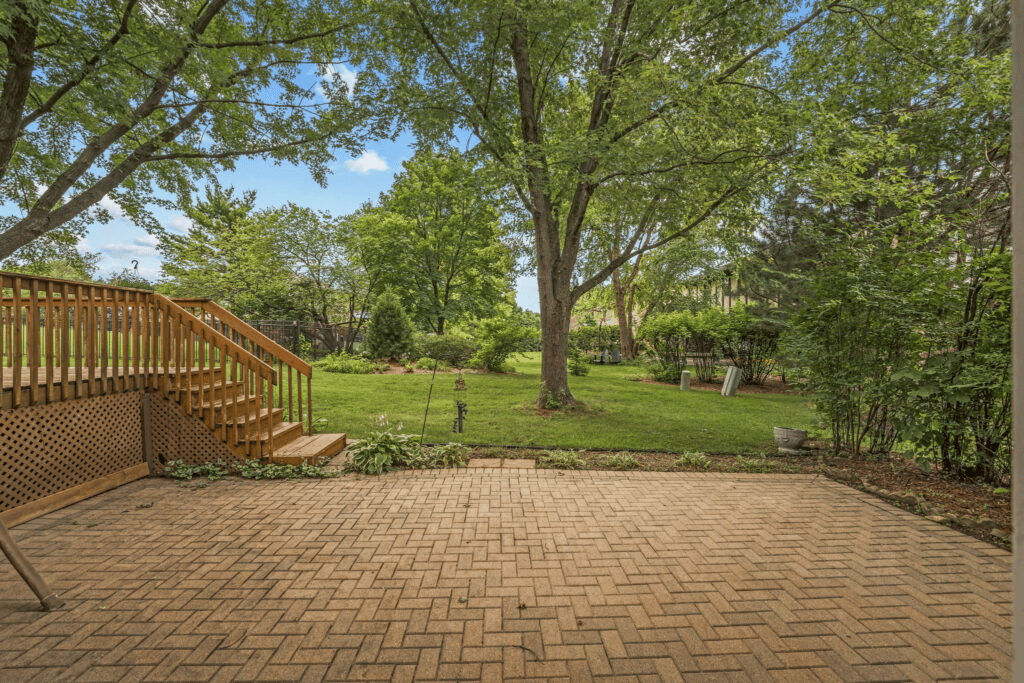 Eating space opens onto the large deck (recently power washed) with steps down to luxurious 20×17 paver patio.