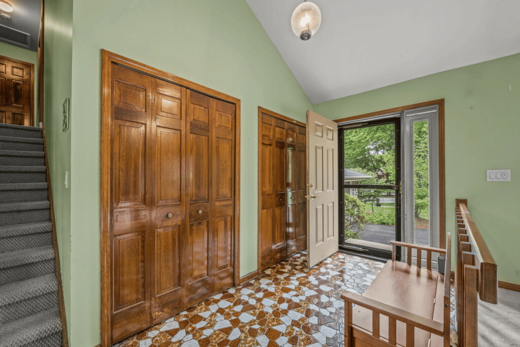 Foyer with ceramic tile entry and double closets. Soaring 15-foot vaulted ceilings in the foyer, living & dining rooms.