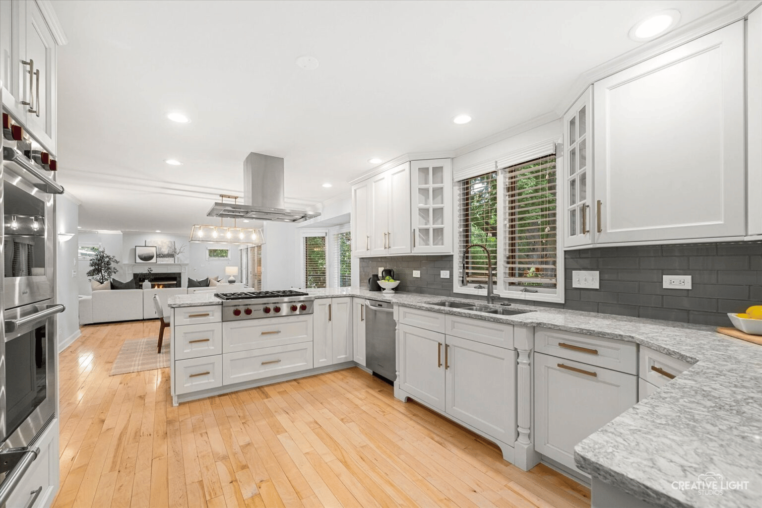 The heart of the home is the stunning chef’s kitchen, fully renovated in 2019 and designed to impress even the most discerning buyers. Outfitted with Wolf and Viking appliances, quartz countertops, and a breakfast bar peninsula, this space balances elegance with functionality. Natural light pours across the quartz surfaces, making every detail shine. Whether you are hosting a holiday gathering or enjoying a quiet morning coffee, this kitchen makes every moment feel special.
