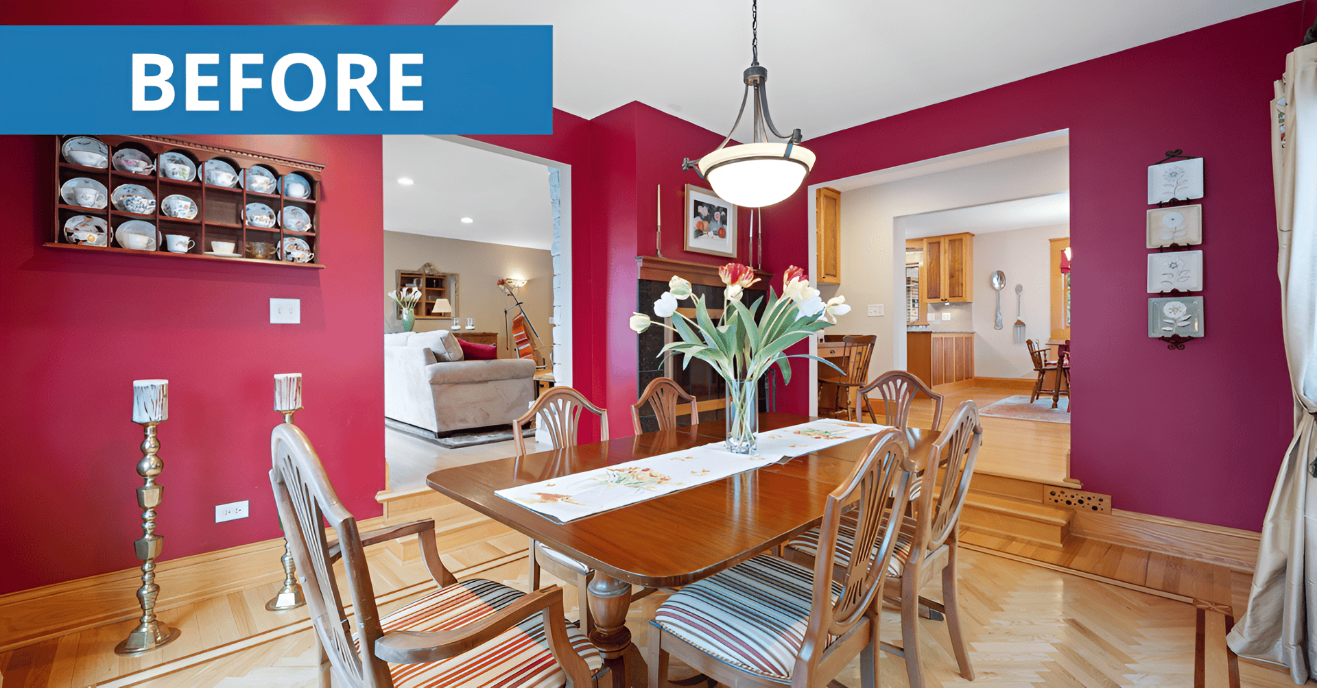 One of our recent clients had a dining room painted in a deep red, a color that was once trendy for its association with warmth and appetite, but now tends to make the space feel dark, heavy, and dated. With guidance from our staging and redesign consultant, Cindy Zaeske, the seller chose a warm, neutral greige to replace the red. The difference was immediate.