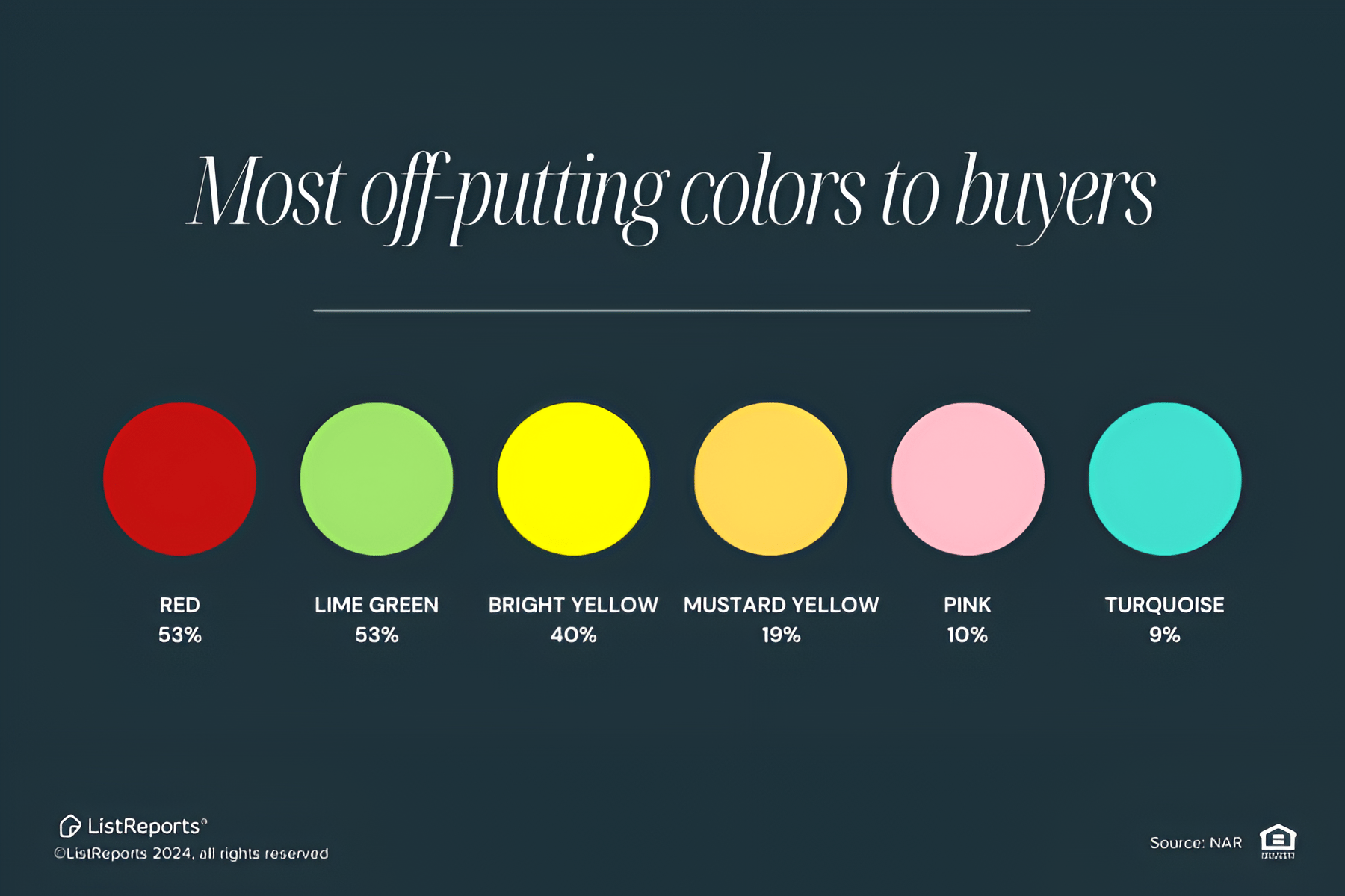 According to a report from NAR, buyers consistently rank the following paint colors as the least appealing when touring a home: