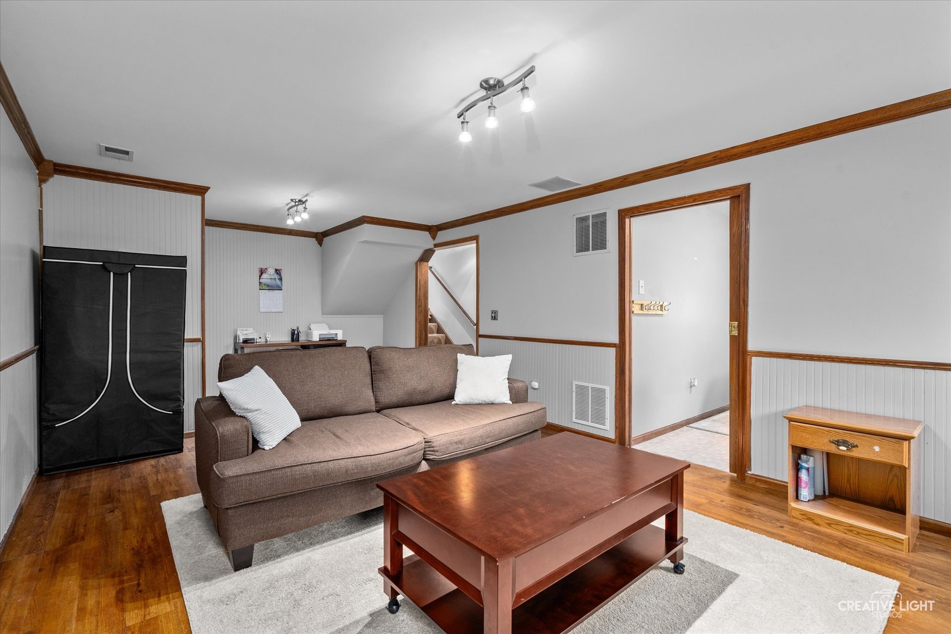 This 4-bedroom, 2-bathroom home offers a layout that suits today’s lifestyle. The main level features vaulted ceilings, newer laminate flooring, and some fresh paint. Wainscoting in the foyer and living areas adds charm, while crown molding in the lower level gives the home a finished, polished feel.